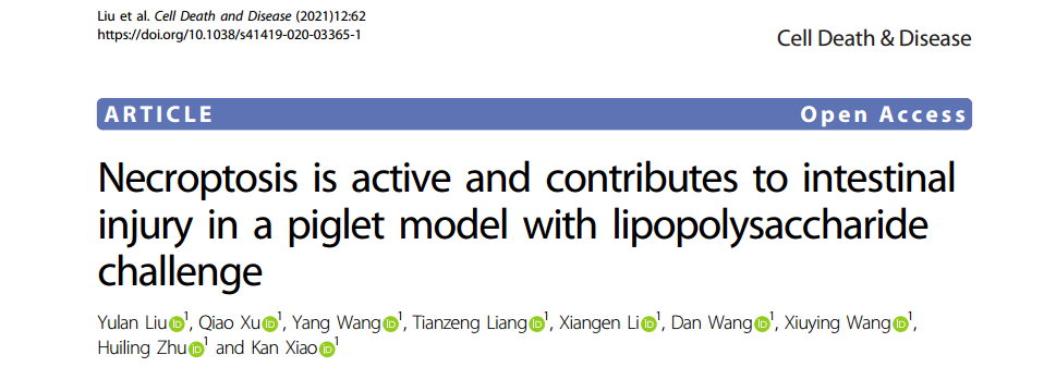 日前,公司刘玉兰教授团队在Nature出版集团旗下国际著名学术期刊Cell Death & Disease(IF2019:6.304)在线发表题为“Necroptosis is active and contributes to intestinal injury in a piglet model with lipopolysaccharide challenge”的研究论文。刘玉兰教授为该论文的通讯作者。(论文链接地址:https://www.nature.com/articles/s41419-020-03365-1)。