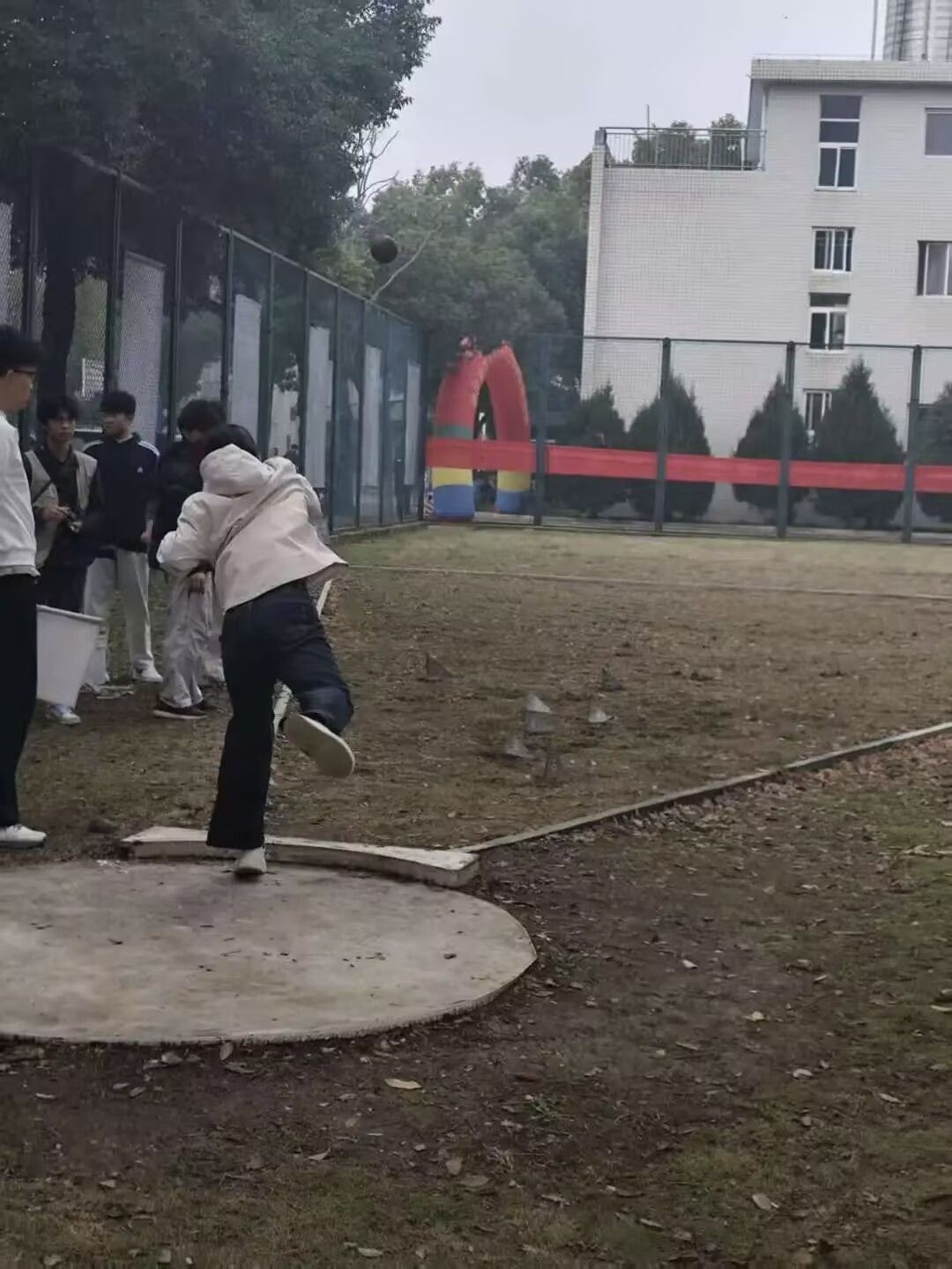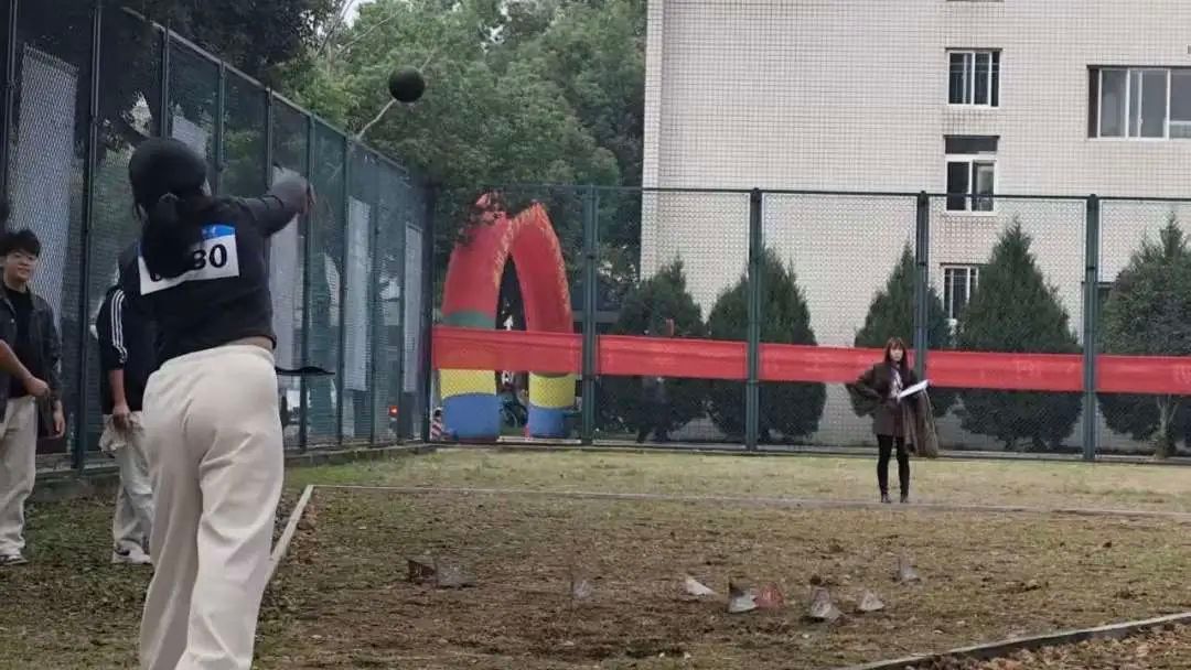 铅球区,选手们转身蓄力,手臂猛地推出,铅球划出有力弧线,“咚”的一声落向远方。