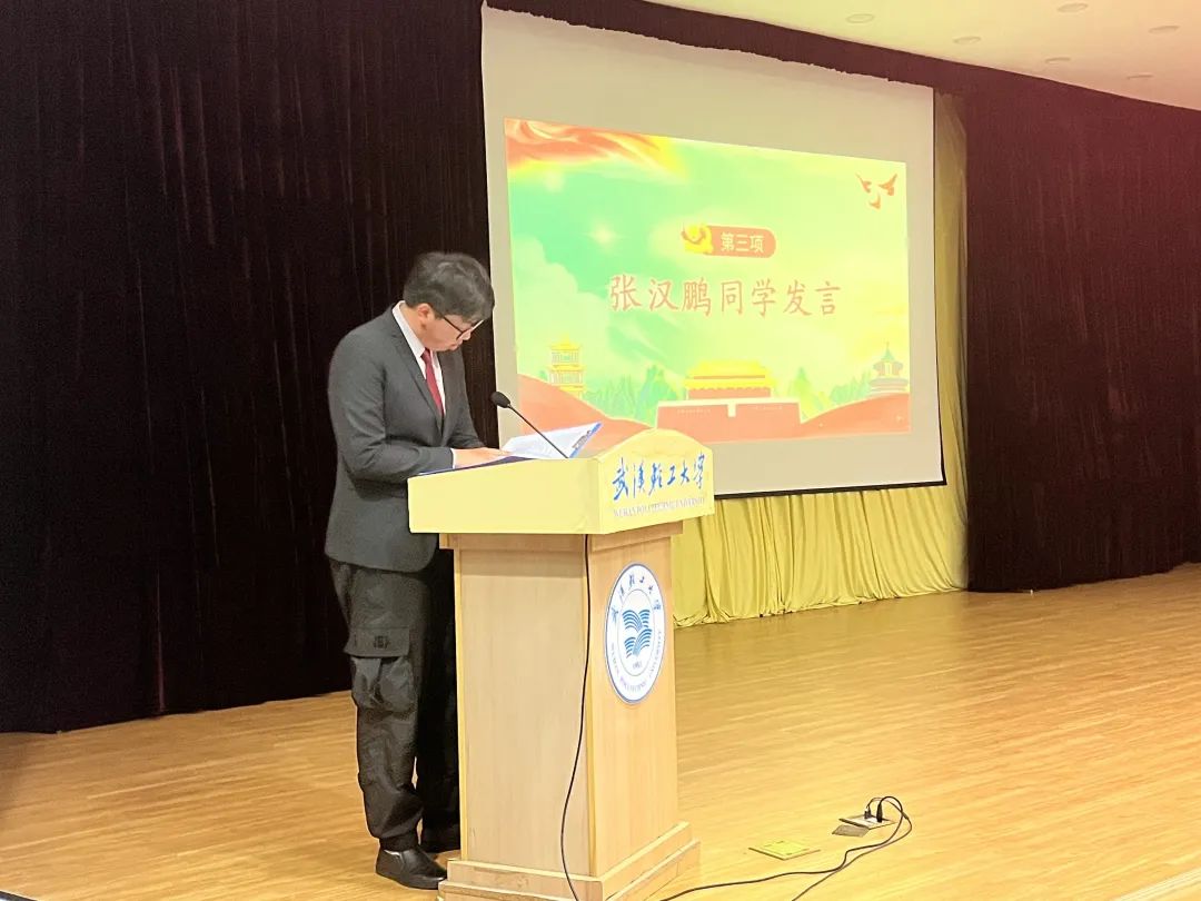 张汉鹏同学、刘庭丽同学分别作为上一届和新一届团学组织成员代表发言;院团委副书记任红丽带领新一届成员宣誓;科技创新与创业协会徐唯怡同学代表志愿者作了发言。