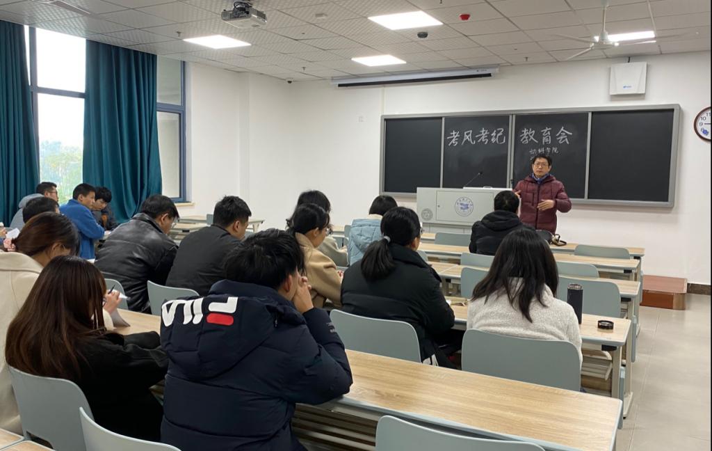 为严肃考纪,端正考风,best365英国体育在线于12月8日在金银湖实验教学楼B202和动科楼208召开考风考纪教育大会,best365英国体育在线副经理陈洪波、教务处杨书慧老师出席并发表讲话,全体研一员工参会。