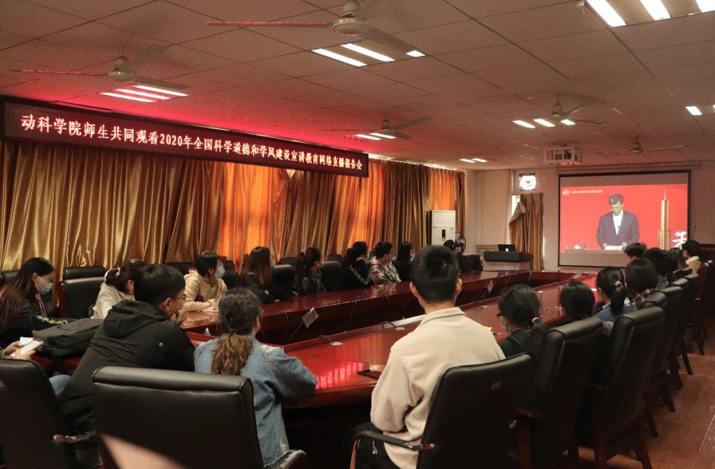 在深入学习贯彻党的十九届五中全会精神之际,为大力弘扬科学家精神,引导广大师生传承优良学风、坚守学术诚信,11月20日下午,公司组织全体研究生和青年教师在401会议室集中观看了由中国科协、教育部、科技部、中科院、社科院、工程院、自然科学基金委在北京举办的2020年全国科学道德和学风建设宣讲教育报告会暨宣传月启动仪式网络直播活动。