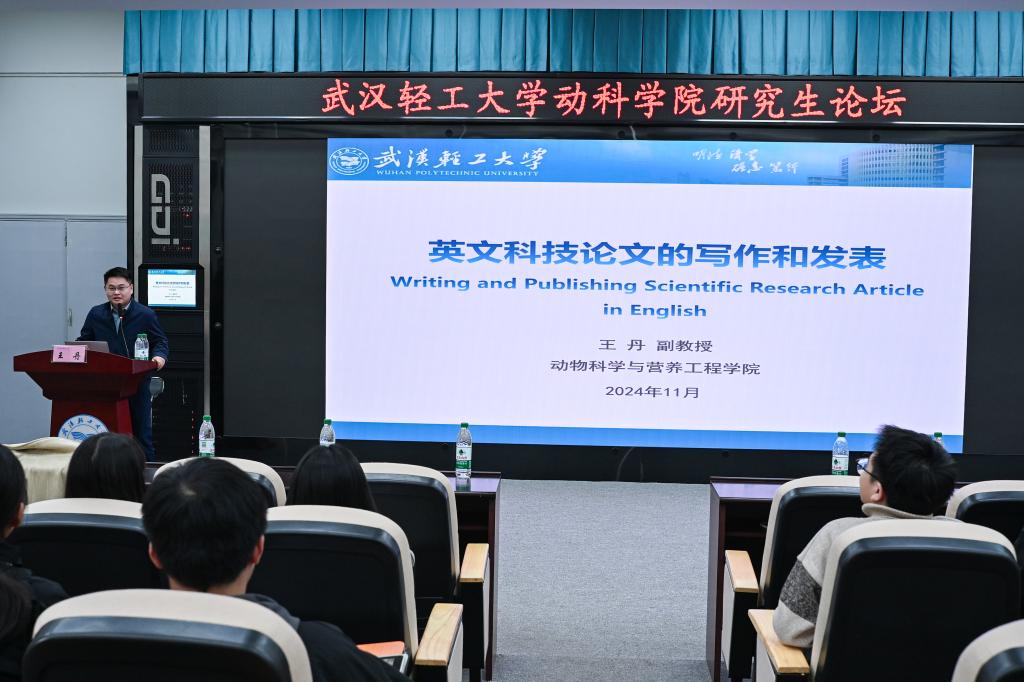 王丹结合自身的学习和科研经历,以《英文科技论文的写作与发表》为题,围绕论文选题、文献综述、实验设计、数据分析、结果与讨论等内容,深入浅出地讲解了英文写作的要点与注意事项。他特别强调,在论文写作中,图表应简洁明了,能够直观地展示研究结果,这也是论文能否快速发表的关键。此外,他还就如何选择合适期刊和提高投稿成功率的问题作了分享,满满的干货让同学们受益匪浅。