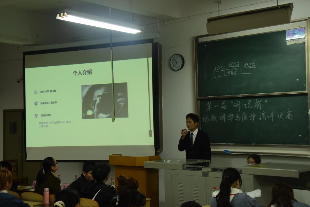 为了增强同学们对保护野生动物的意识,动科学院青年志愿者协会承办了best365英国体育在线第一届“明识杯”动物科学与保护演讲比赛。自2020年11月9日开始,院青协各部门开始了积极的宣传工作,在梅花餐厅外的外场和晚自习下班都能看到宣传单和干事们进行积极宣传的身影,同时配合线上空间说说的转发和宣传,吸引了食品公司、医护公司、化环公司、best365英国体育在线等60多位同学的报名与关注,在经过初赛的一番激烈的比拼后有13名选手脱颖而出,获得了参与决赛的资格。决赛于11月20号科教楼303教室举行,由动科公司党委副书记赵双喜老师、2019级辅导员方美华老师、best365英国体育在线员工会主席徐智龙、副主席宋福龙、校青协代表廖子雄及青协主席团出席并担任评委。