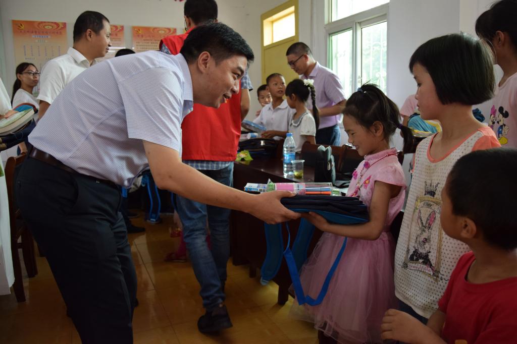 会上还进行了爱心捐赠。服务团向当地留守儿童捐赠了价值5000余元的文体用品和课外图书。