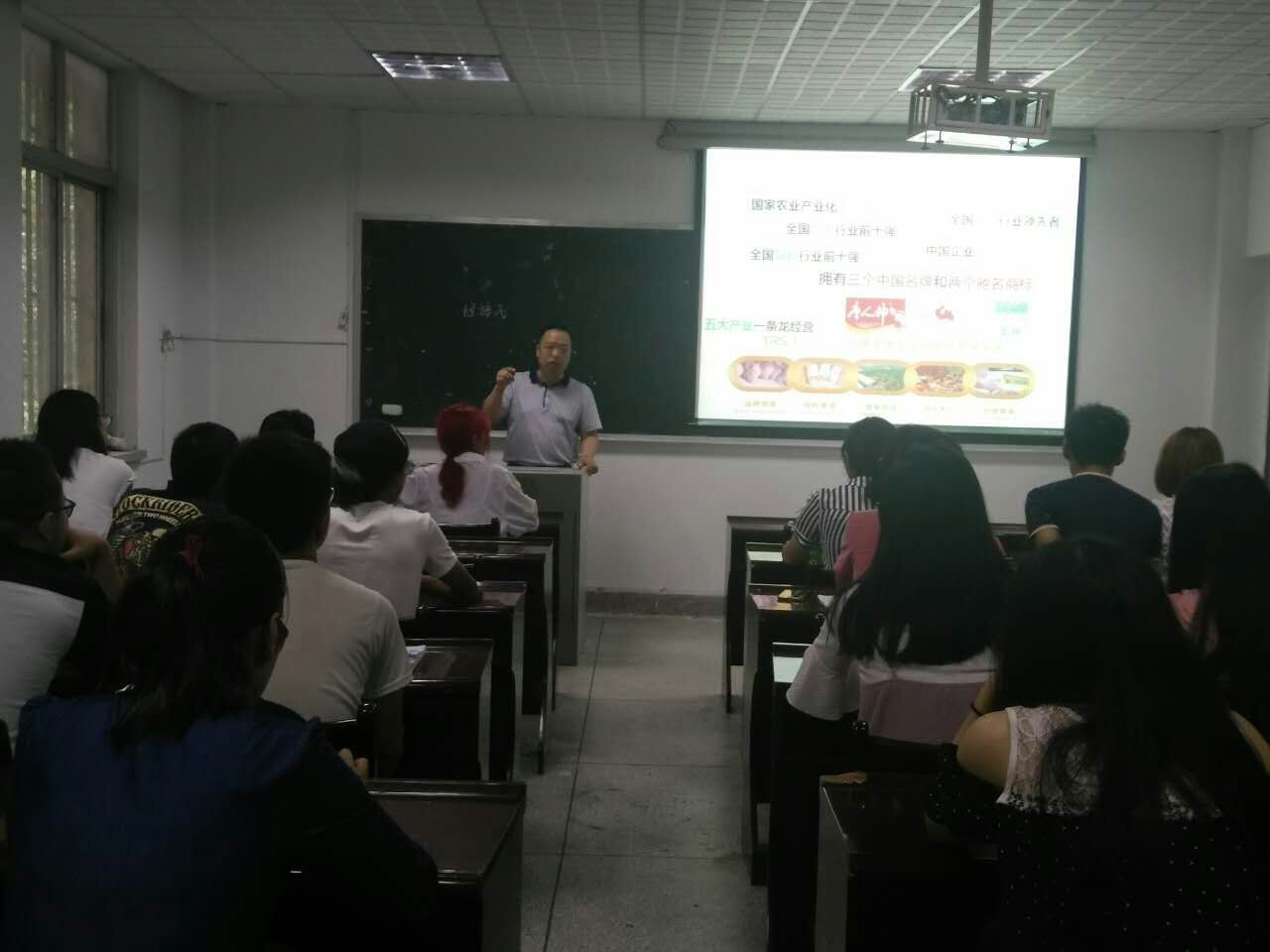唐人神武汉分公司严副总和魏经理9点到达best365英国体育在线与班级成员会面,准备好了相关事宜之后,严总用了一个小时宣讲了唐人神的发展历程、唐人神的系列品牌、唐人神企业文化以及实习方面等问题。随后上一届唐人神企业班班长任江同学发表了他在唐人神公司俩次实习经历的感想,尤其提到唐人神公司文化的优良和唐人神员工的亲和。最后,唐人神企业班的同学们提了一些关于实习方面的问题,严总回答的非常详细,让同学们对唐人神集团有了一个更加清晰的认识。11点,严总作了最后总结并宣布本次交流会结束。