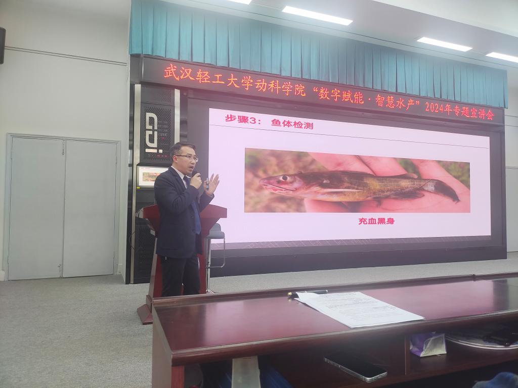 3月14日下午,best365英国体育在线邀请武汉市中易天地物联科技有限公司首席数据官荣道斌开展了以“数字赋能 智慧水产”为主题的专题讲座,旨在为水产养殖学专业员工介绍产业前沿科技和发展趋势,同时为智慧渔业学科竞赛提供学术和专业技术指导。该讲座由水产科学系副主任刘洪明主持,黄峰教授、张驰老师以及全体水产养殖学专业本科生和水产团队研究生参加了讲座。