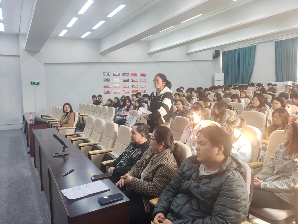与会师生对讲座内容表现出浓厚的兴趣,在提问环节积极互动。荣道斌数据官用丰富的实践经验和专业知识,耐心解答了同学们对产业发展和未来就业的疑惑。荣道斌数据官强调了参加实习和实践活动的重要性,指出掌握数据处理方法对于提高工作效率的帮助;在解决当前水产养殖行业挑战的问题上,他提出了数字技术对于养殖预警、风险控制等方面的重要作用;他还分享了人工智能和大数据分析技术在数字赋能智慧水产中的颠覆性作用,并提出了面临的主要困难和解决方法。