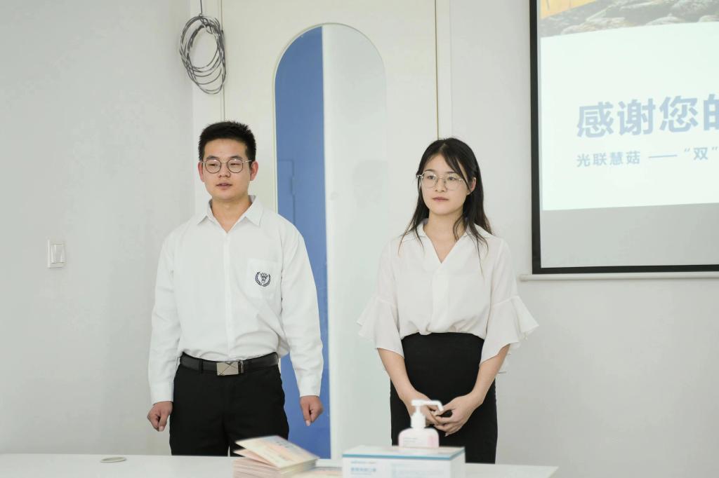 王旭鑫作为《光联慧菇——“双”能互补干燥箱,助力农产品干燥》项目的员工负责人,在2022年湖北省第十二届“挑战杯”老员工创业计划竞赛中,荣获银奖。他为大家详细介绍了项目的背景和研究方向,项目的应用方向与场景以及项目科研成果,充分展现出团队独有的创新特点和创新思路。