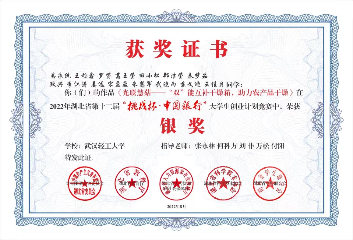 武汉恒阳聚创信息技术有限公司于2021年5月由轻工大创业团队-阳光蘑力团队注册成立,是一家基于太阳能光热效应原理,集光热采集、数字管控、智能调配为一体的干燥设备研发公司,是公司首个科技创新型企业。目前,公司已经成功研发出一种太阳能智能食品干燥箱,并申报受理发明专利1项,授权实用新型专利2项,且同3家企业签订意向合作,建立了5处试用点。
