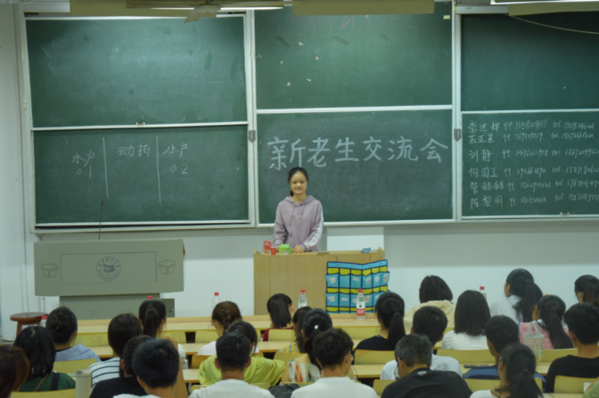 主持人石颢以新生的角度和大家交流了入学以来对全新生活的感触。然后,各个优秀的老生上台分享经验、答疑解惑。17级水产养殖专业的陈黎明同学不仅向大家分享了在老员工活中积极参加社团活动对提高自身能力所带来的益处,还强调了合理理财的重要性。紧随其后的优秀学员常进辉、何国玉也介绍了水产专业在我国的发展前景以及就业优势,让处在迷茫困顿之中的新生们豁然开朗。另有研究生学长张博以风趣幽默的语言讲述了自己考研的过程,让新生们大开眼界。最后,新生们针对自己所遇到的问题,向学长学姐们提出了疑问,学长学姐们也是有问必答,新老生交流会在欢快、愉悦、和谐的氛围中落下帷幕。