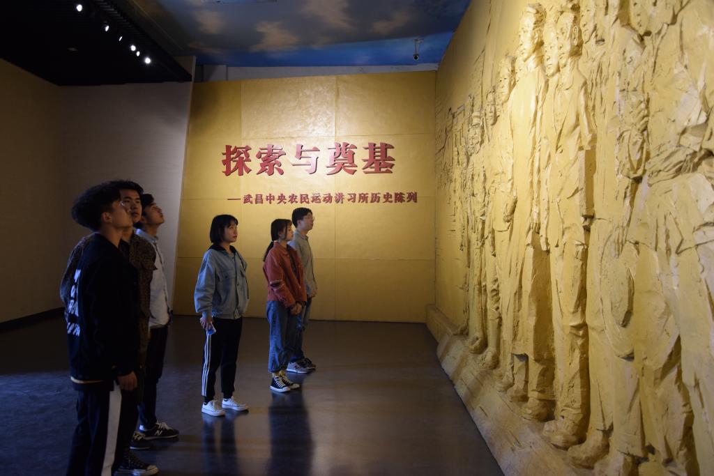 活动伊始,大家参观了武昌农民运动讲习所旧址纪念馆。国共合作时期,这里是毛泽东倡议创办的一所培养全国农民运动干部的公司,青砖灰瓦掩映下的堂馆展室,处处留有革命家运筹帷幄、决胜千里的印记。一幅幅照片、一件件展品,尤如一篇波澜壮阔的历史篇章,展现了老一辈共产党人前赴后继的光辉事迹。团员们时而驻足凝视,时而用心聆听,革命前辈那种为共产主义奋斗终身的英雄主义气慨,深深地震撼着每位团员的心灵。