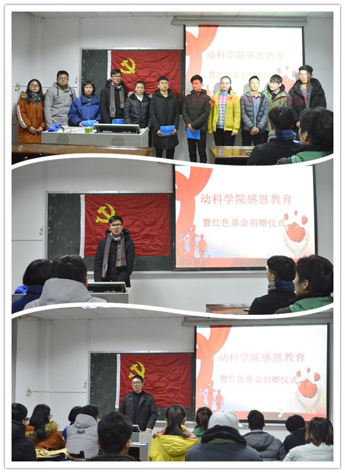 12月14日下午,公司“红色基金”捐赠仪式在208报告厅隆重举行。捐赠仪式由学工办主任王世娟老师主持,院分党委副书记赵双喜发表讲话,公司党员代表、各年级班长、团支书共同见证了这一神圣而光荣的捐赠过程。