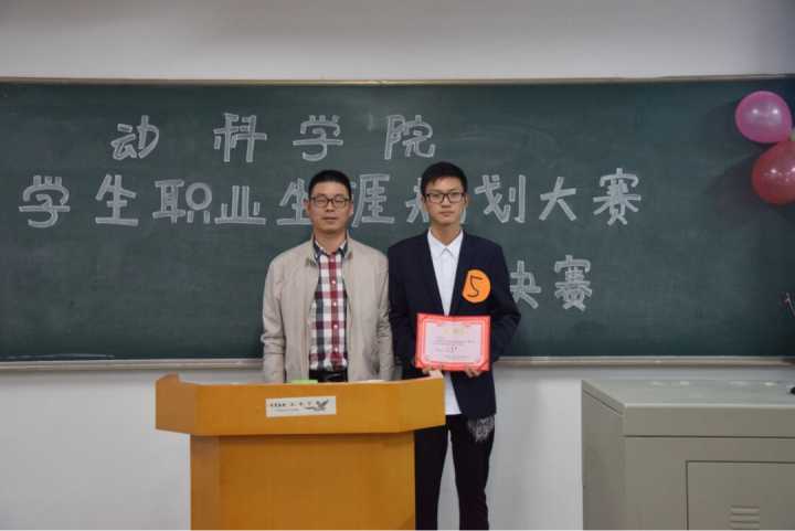 比赛在秘书处干事宋雯欣的主持下顺利展开。首先,十位参赛人员根据签到顺序依次上台,他们结合各自制作的PPT对自己的职业生涯规划向台下评委和观众进行一一的展示。选手们从自我分析到外部环境分析,从短期目标到长期目标,在职业规划书中都有很好的设计。经过一小时的紧张的比拼,最终由动科1802班的王新同学夺得桂冠,赵双喜书记为选手颁发获奖证书并合影留念。周晗聪、张青莎获得二等奖,李欢欢、覃丽、张玉玲获得三等奖,赵亚梅与王世娟老师为获奖选手颁发获奖证书并与选手们合影留念。赛后,赵书记对本次大赛进行总结。他肯定了十位参赛选手的表现,针对职业规划方面他强调:“老员工要确定目标、明确方向,还要为之付出努力,要学会根据时代潮流变化不断自我修正、自我完善”。在经历这次职业生涯划大赛后,希望同学们努力奋斗,提高自我素养,直至实现职业生涯规划。