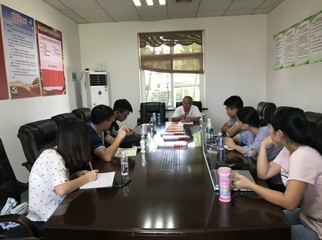 调研团队在农场工作人员的带领下参观繁育场,了解了种龟养殖区的总体面积、池塘结构、种龟龟龄和数量等。随后,农场负责人盛常斌总经理给志愿者们讲解了乌龟养殖、繁育过程中的生物特性和注意点,以及整个公司的规模、具体产品和未来规划等内容。