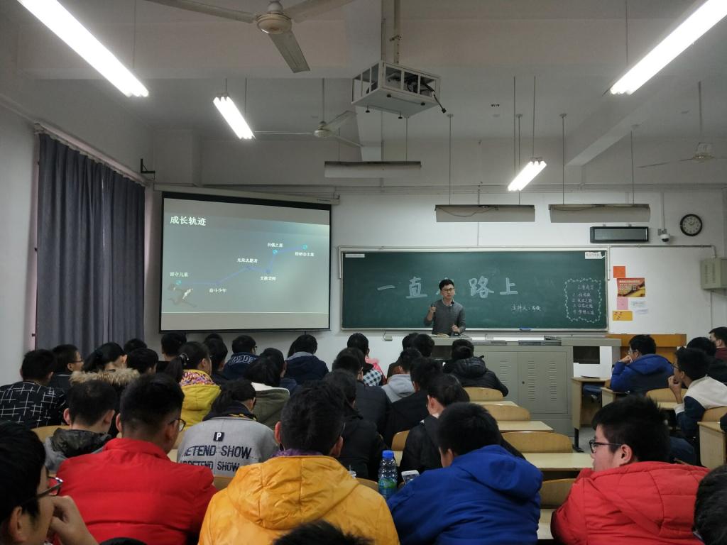 讲座于4点10分正式开始,先由柳磊同学上台对周俊学长进行了一个简单的介绍,随后周俊学长上台开始演讲。周俊学长从四个方面介绍了自己的成长成才之路。在“我是谁”板块中,周俊学长进行了自我介绍并向我们讲述了的他的成长轨迹;在“求学之路”板块中,他向我们介绍他求员工涯中的心路历程与努力经过;在“公益之路”板块中,他让我们了解了支教时发生的各种事情,其中,山区孩子们艰苦的生活与对学习的热情均对我们造成了深深的震撼;最后的“梦想之路”的板块中,周俊学长则与我们畅谈未来,给于了同学们无限的期望。