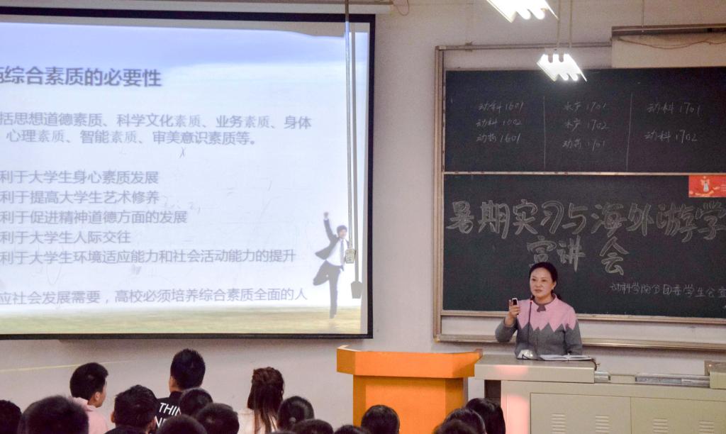 (院青年全媒体中心消息文:陈书楷/图:全媒体) 为让同学们了解综合素质拓展学分的认定办法与其重要性,提高员工的探索与创新能力,公司于10月26日在科教楼306教室开展了综合素质拓展学分认定讲座。动科院副党委书记赵双喜,2017级辅导员孙静出席了本次讲座。