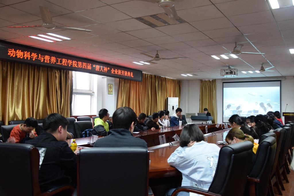 3月29日晚,​best365英国体育在线第四届唐人神企业班开班典礼在401报告厅举行。学工办主任王世娟老师和唐人神班全体成员共同参加开班典礼,第三届唐人神企业班班长潘奕凡主持会议。
