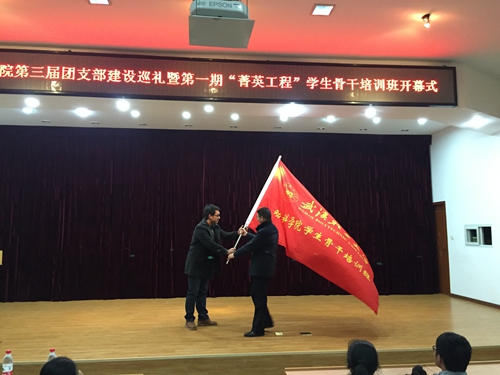开幕式上,党委副书记赵双喜为“菁英工程”员工骨干培训班授旗,分团委书记田兴恒、辅导员赵亚梅分别宣读了团支部建设巡礼与培训班活动安排、培训班纪律。
