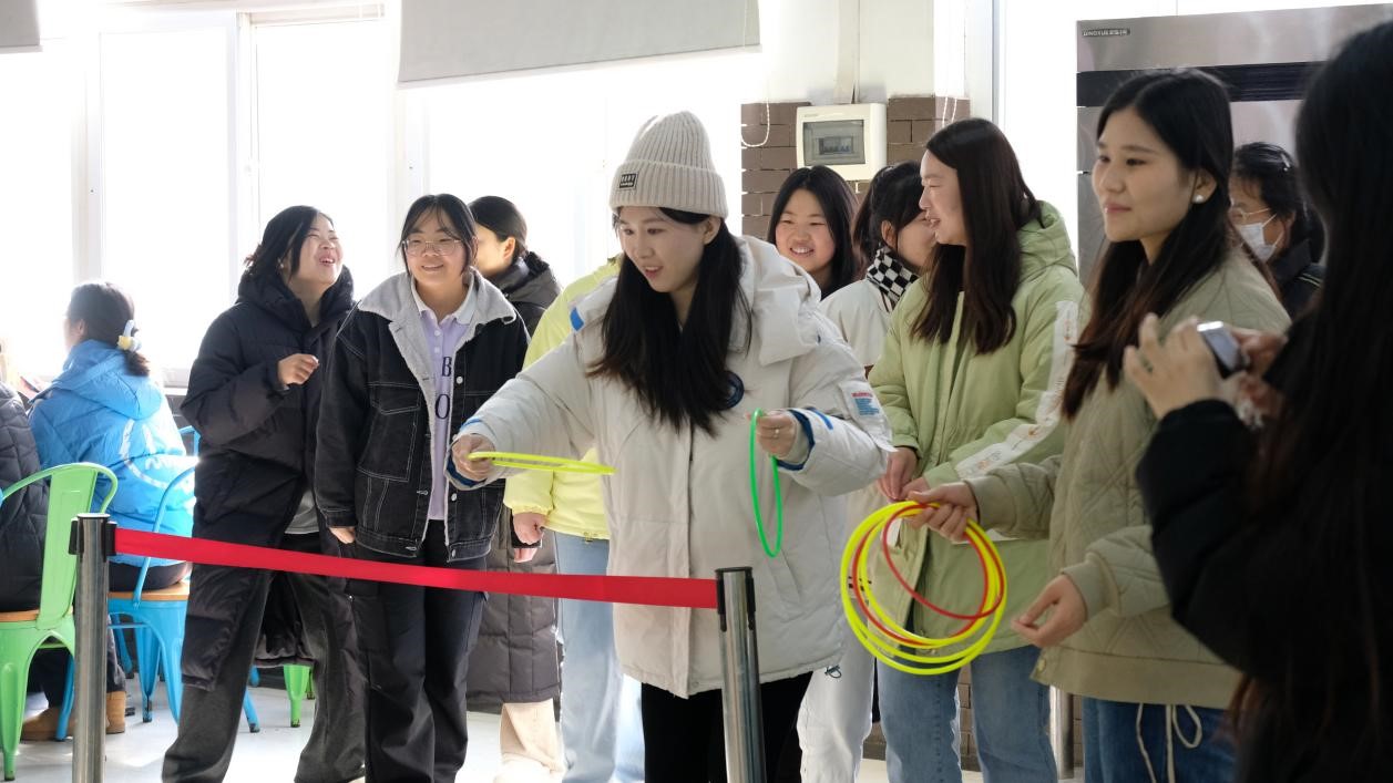 为充分调动同学们的热情,现场进行了套圈比赛、“文化大放送”问答、“你划我猜”三个暖场活动。暖场活动结束后,接着就进入到包饺子活动环节。比赛以每桌为一组,组内推选一位同学进行限时五分钟的包饺子比拼,数量多者胜,前三名将分别获得丰厚奖品。
