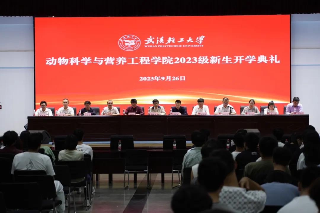 筑梦前行,共赴华章。9月26日晚,best365英国体育在线在常青校区老员工活动中心举办2023级新生开学典礼。best365英国体育在线员工湖北浩华生物技术有限公司总经理胡群兵、四川成农禾创科技有限公司董事长陈华山、湖北浩华生物技术有限公司水产事业部总监牟伦波,公司党委书记李斌斌、经理邱银生、副经理陈洪波、公司党委副书记田兴恒、经理助理郭双双,各系主任、班主任、辅导员,以及308名2023级新生参加开学典礼。典礼由公司党委副书记田兴恒主持。
