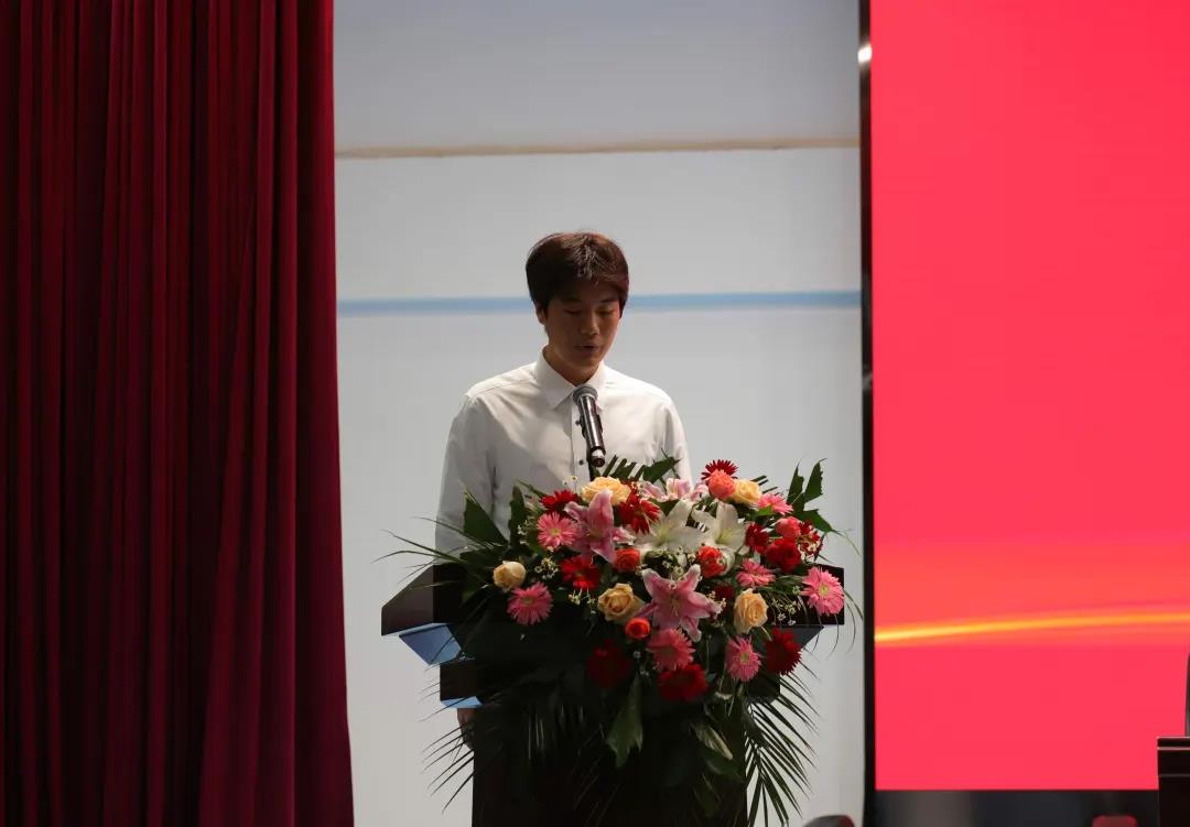 动产2305班李中原同学代表新生向入校以来默默付出的领导、老师、学长学姐表示感谢,并号召广大新生保持求知渴望、做好生涯规划、学会团结协作,在波澜壮阔的时代洪流中谱写青春华章。