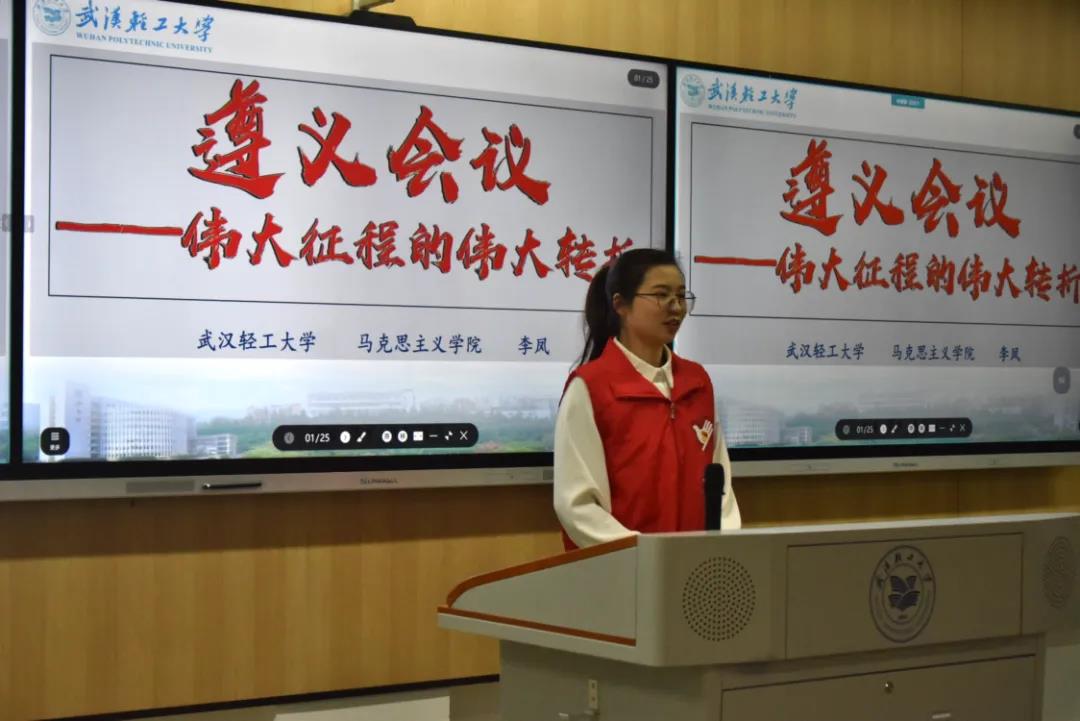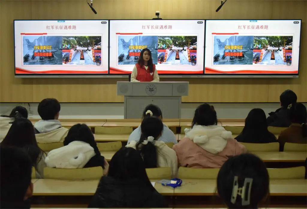 马克思主义公司志愿宣讲团成员李凤为同学们介绍了伟大的历史转折会议——遵义会议,号召同学们学习“坚定信念,坚持真理,独立自主,团结统一”的遵义会议精神,在思想上树立正确的世界观、人生观和价值观,坚定马克思主义信仰,在学习和生活中培养独立思考能力和判断力。