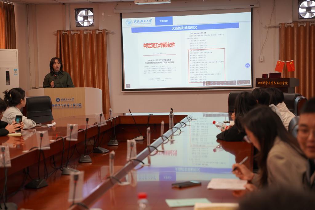 会议伊始,院团委书记董田歌从大赛沿革、大赛简介、参赛对象、参赛形式、大赛组别、参赛技巧等多个方面介绍了“挑战杯”和“互联网+”大赛的基本情况。