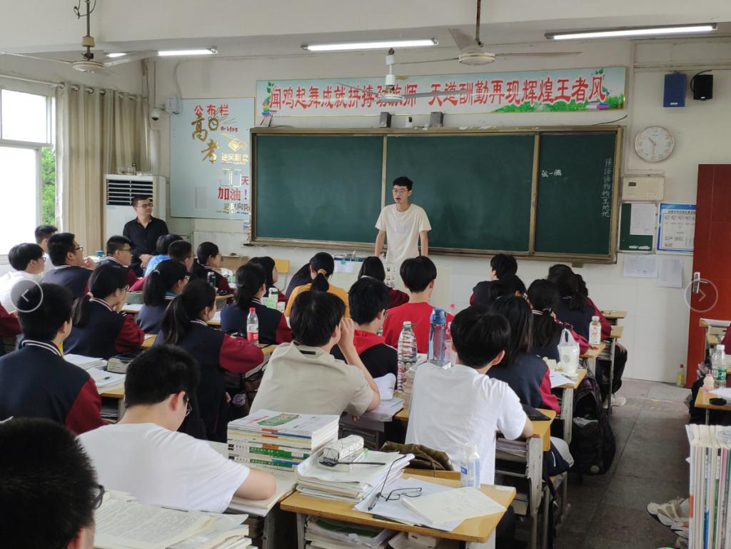 图一 余宇航同学与仙桃中学毕业年级员工交流