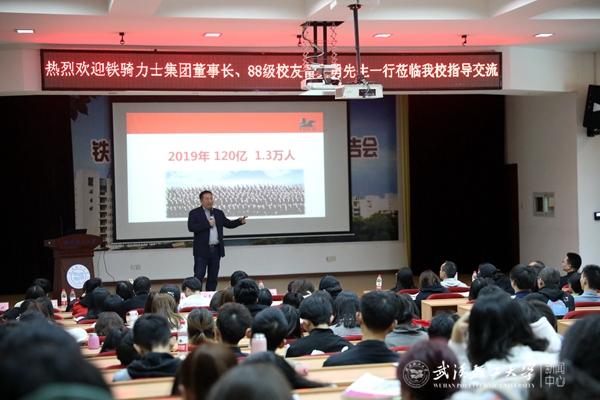 报告会在铁骑力士集团宣传片中拉开帷幕。铁骑力士集团人力资源经理何波教授以“我眼中的铁骑力士集团”为题,对铁骑力士集团的企业愿景、产业特征、磁石文化等基本情况作了简要介绍。