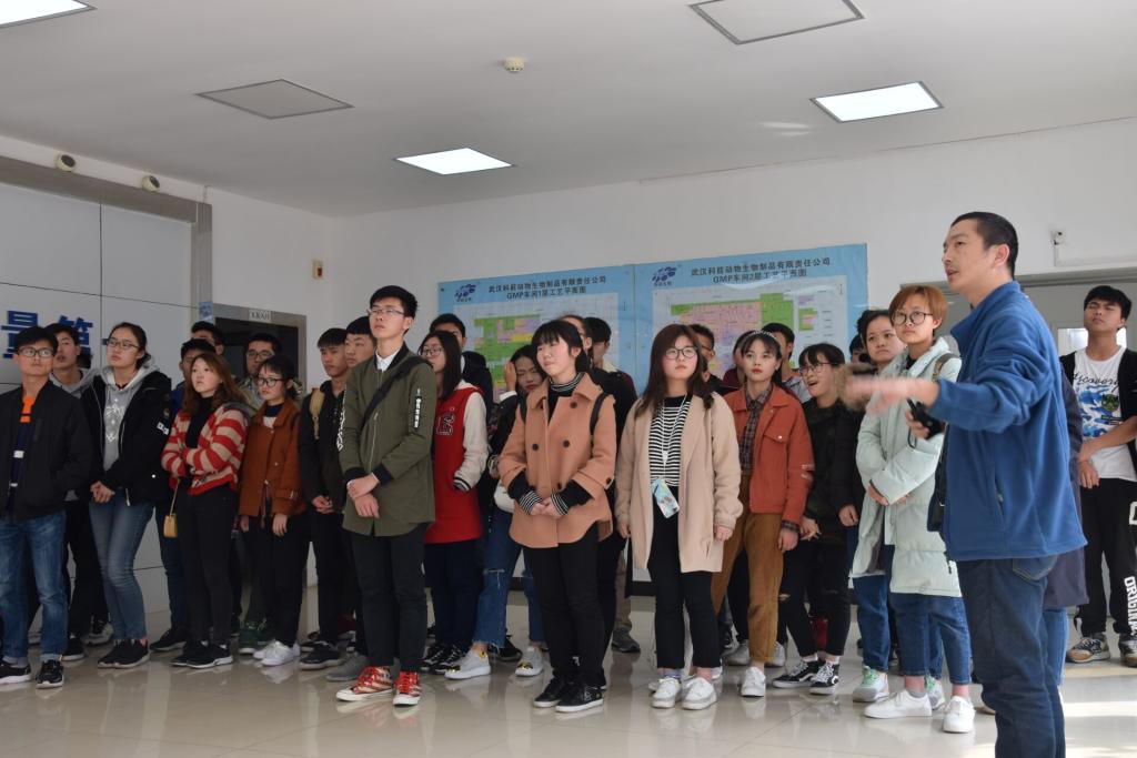 院青年全媒体消息(文:闫立松/图:闫立松) 为提高同学们对专业的认同,激发专业的兴趣,best365英国体育在线于3月22号下午组织2017级动物药学与动物科学40名同学到武汉科前生物股份有限公司进行实地参观走访,分党委副书记赵双喜和辅导员孙静老师带队同行。武汉科前生物股份有限公司陈关平副总经理,邹经理、曹经理和尹经理等公司人员全程参与讲解交流。