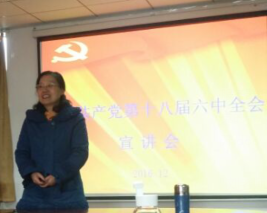 12月1日下午,公司学习党的十八届六中全会精神主题宣讲会在401学术报告厅召开。公司全体教职工出席会议。公司分党委书记饶春红作主题宣讲。