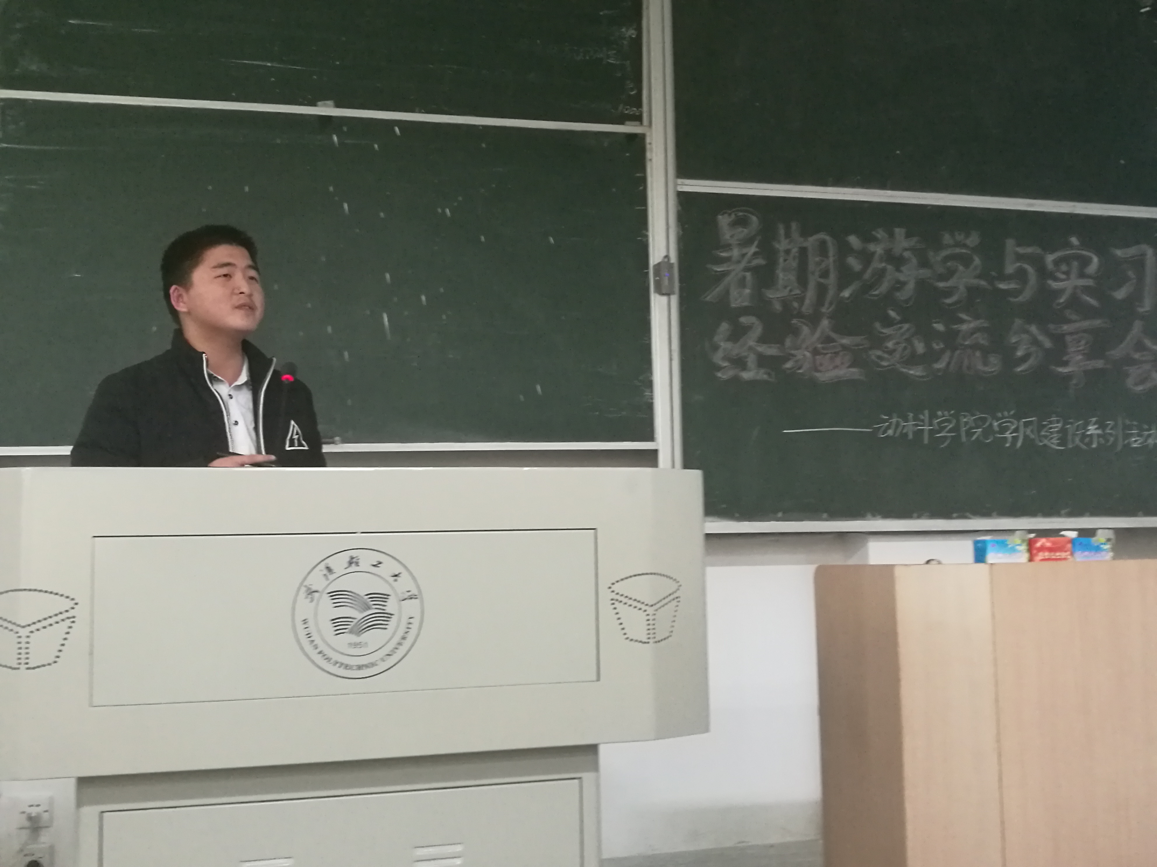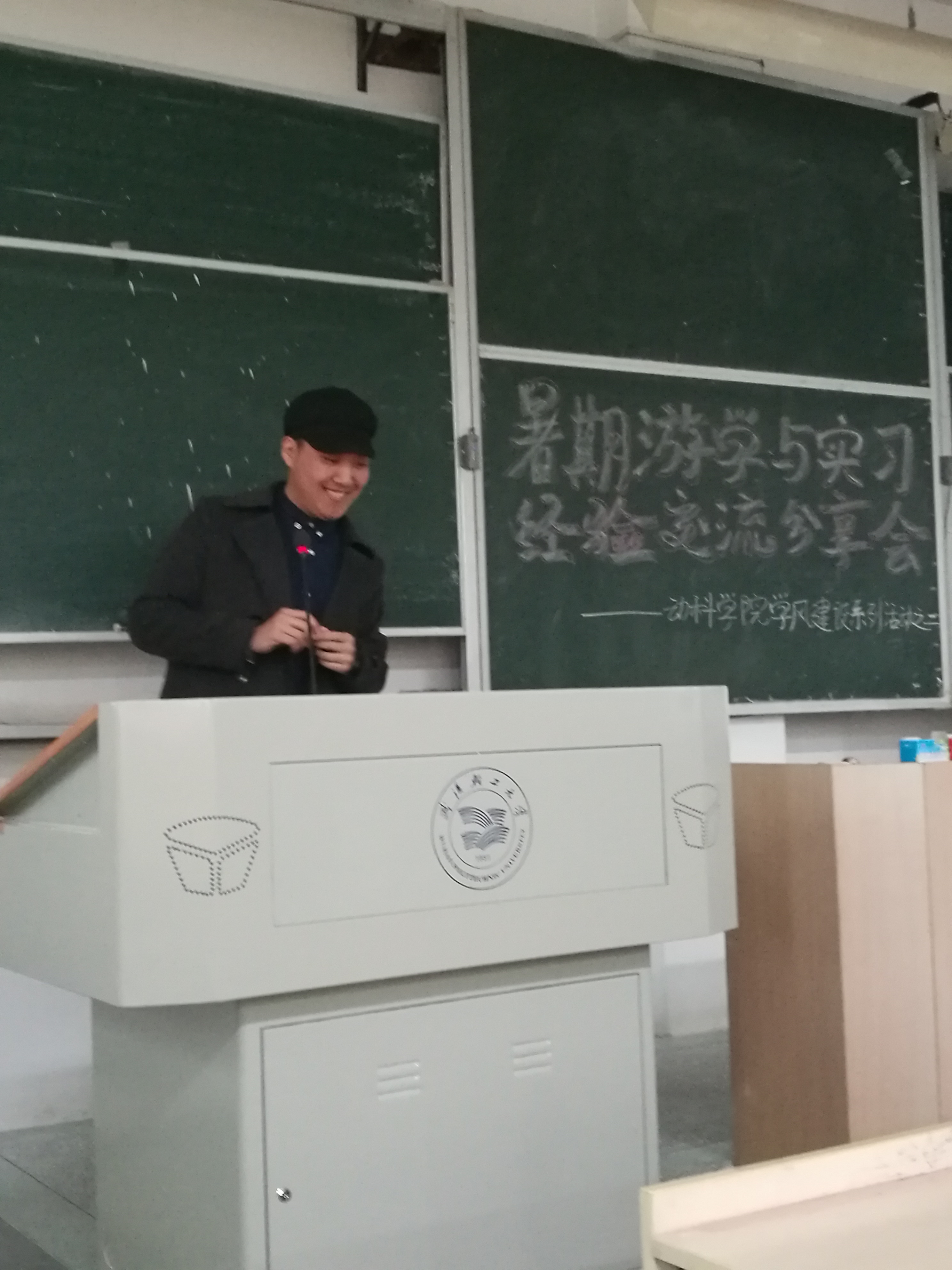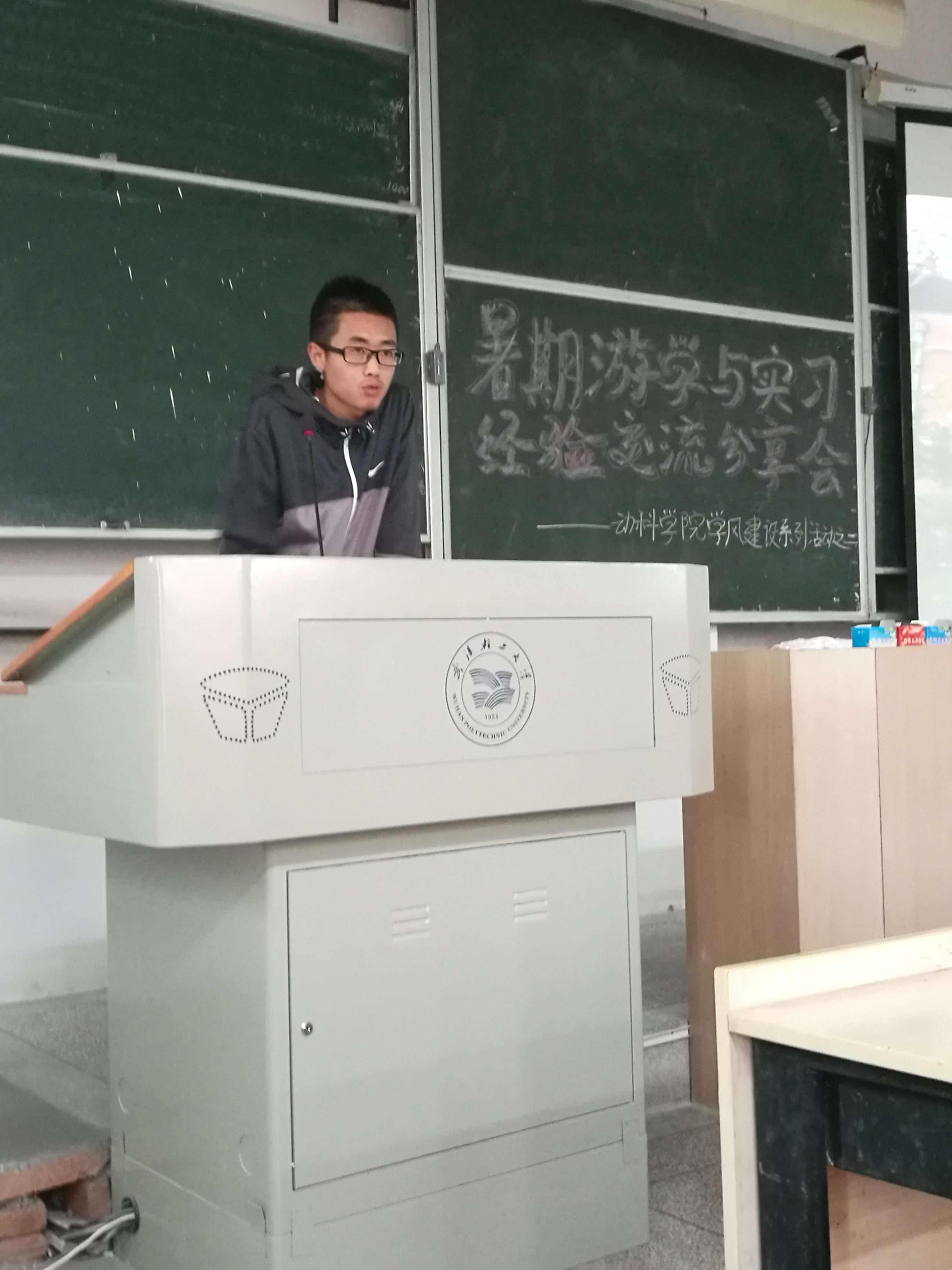 此次交流会共分两个阶段。第一阶段,由到哥伦比亚大学游学的颜泽和到剑桥大学游学的郝永胜同学做海外游学经历分享。他们分别用丰富的图片向同学们展示了在美国和英国游学的不同经历,详细介绍了国外的学习与生活情况,包括公司历史、课程设置、实践活动以及日常餐饮等,让同学们在感官享受的同时也对国外员工的学习和生活有了更多的了解。同时,他们还向大家分享了游学的收获,勉励同学们珍惜当前的学习时光,鼓励大家有机会争取到世界一流大学去深造。第二阶段,由到湖北汉世伟食品有限公司实习的吕梁康同学和在北京生泰尔生物科技有限公司实习的吕博锦同学做暑期实习经历交流。他们分别为大家介绍了两家公司的基本情况和实习的详细经历,分享了将所学知识应用到具体实践的同时,也提高了自己的团队精神,锻炼了自己的意志,学会了坚持并从中感受快乐和充实,鼓励同学们要充分利用寒暑假大胆的走出去,在社会中锻炼自己,提升自我。