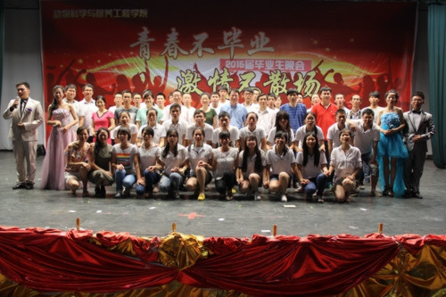 情景剧《聆忆经年》融入动科专业元素,以情景再现的方式回顾了动科学子多姿多彩的四年老员工活,诙谐幽默的表演赢得台下观众阵阵掌声。灯光秀《时光剪影》以其独特的表现形式,让毕业生们细细体会“青葱的岁月,年少的我们,尚好的韶华,珍忆的流年”。相声《满腹经纶》、歌舞《非常6+7》《玩舞》、舞蹈《我看你最“直”》等节目巧妙地展现了老员工的青春魅力,凸显了他们“奋发向上,青春无悔”的精神风貌。学子们在大学的最后舞台上留下了自己最真最美的回忆。