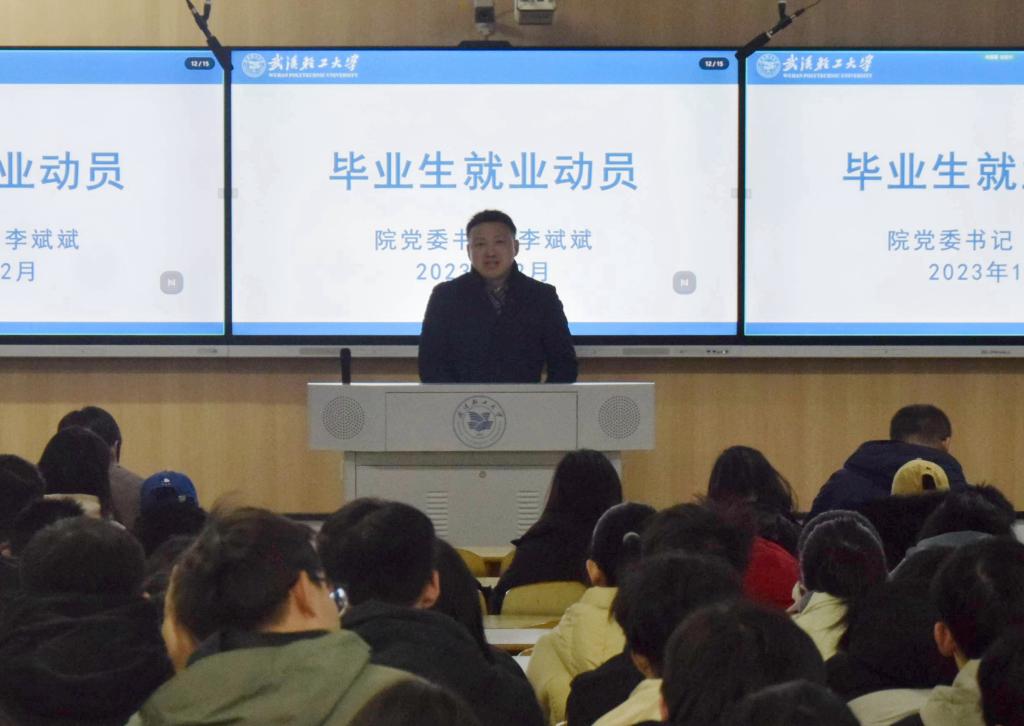 李斌斌作了就业动员。他结合当前就业形势,从为何就业、如何就业、如何就好业三个方面作了讲话。他指出,同学们要树立正确的就业观、择业观,珍惜每一份来自不易的就业机会;要做到不“随大流”,脚踏实地,找准目标,谋定而后动;要立足行业,用好资源,践行兴农报国的使命与担当。