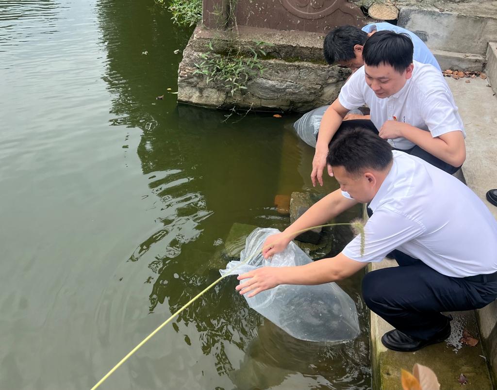 党日活动前,best365英国体育在线一行深入有关农户发放了3万尾翘嘴白鱼苗和100余只蛋鸡苗。在杨作柱、饶国军的陪同下,大家参观了堰头垸村村史馆、网红之家和网红产品展示馆,实地感受乡村振兴战略给农村带来的可喜新变化,了解“共同缔造”推进党建引领基层治理成效。