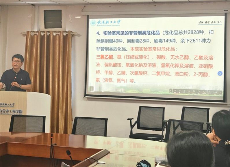 副经理陈洪波作专题报告,系统讲解了管制类(剧毒、易制爆、易制毒)与非管制类化学品的区别及科学管理规范。他特别指出当前公司在非管制类危化品使用中存在的风险点,并对2024年以来实验室安全检查中发现的问题进行通报。陈洪波要求全体教师要带头遵守规章制度,落实安全责任;各科研团队要规范危化品管理,消除安全隐患,建立完善的非管制类危化品台账,加大安全教育力度,做到勤检查、勤整改。