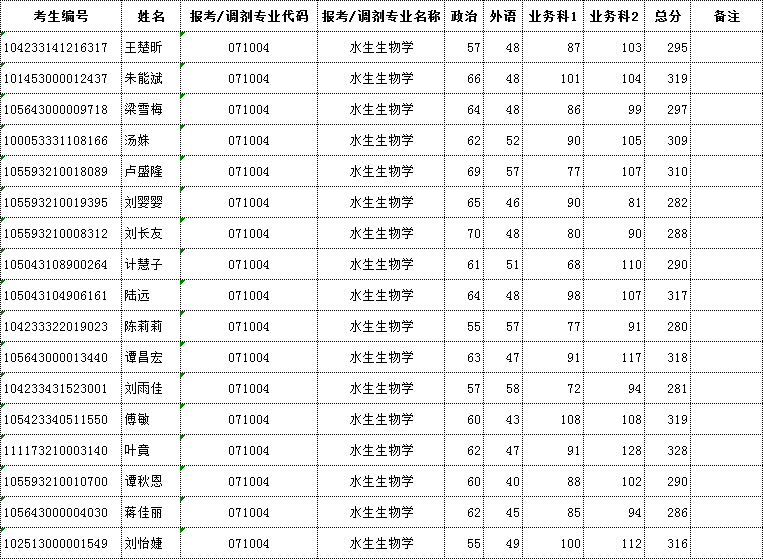 2023调剂研究生复试名单公示-水生生物学