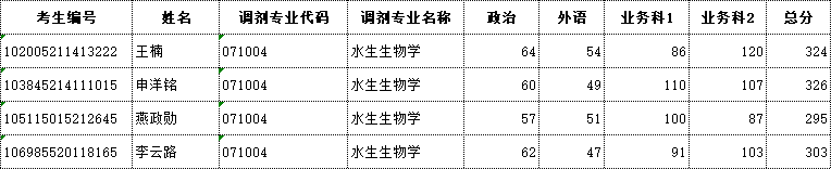 水生生物学调剂复试名单公示