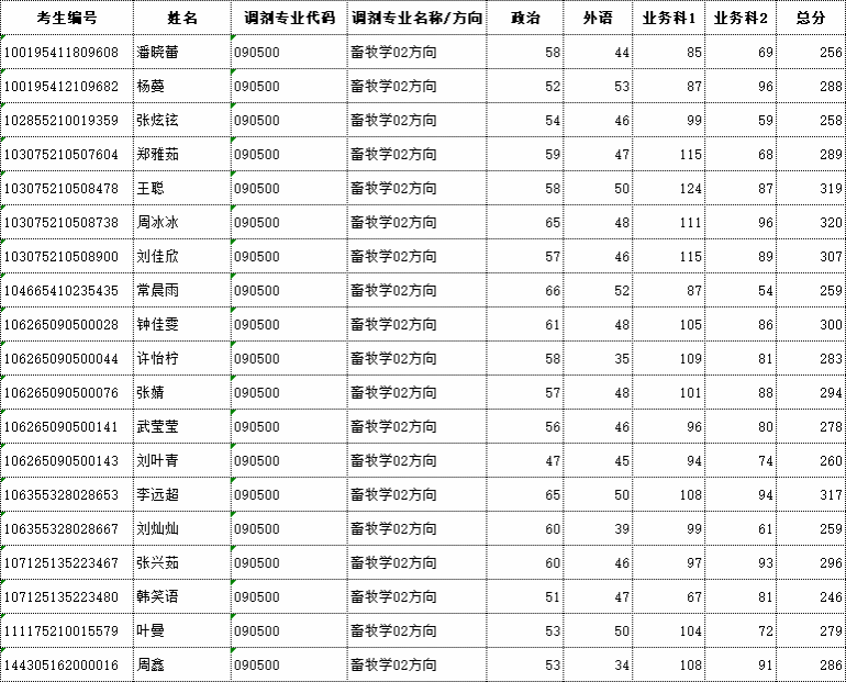 畜牧学03方向调剂复试名单公示