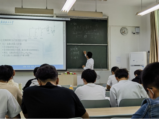 《通风与气力输送》是饲料工程专业必修课,所授内容主要为空气在饲料加工厂和仓库中应用的有关知识。通过学习,使员工具备能够独立解决通风除尘与气力输送的技术问题,掌握通风除尘与气力输送设备的构造、工作原理、工作参数、选型设计计算、操作方法及常见故障分析等,使员工具有正确地选用常规设备并进行创新的能力。本次课主要讲授的是饲料厂通风除尘系统的设计计算。针对本次课程内容的特点,严老师通过板书详细讲解计算过程,并以PPT为辅,对重难点部分反复讲解,力求每一位同学都能充分理解与掌握。