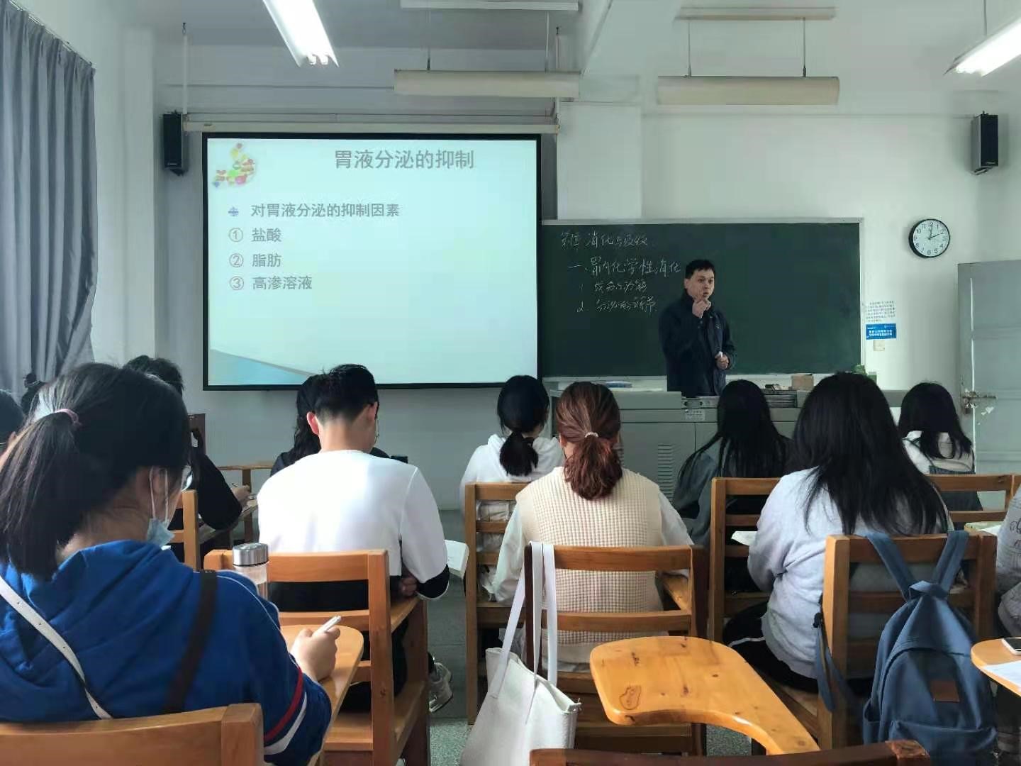 余登航老师讲授了化学性消化这一章节。讲授内容涵盖胃液、胰液、胆汁和小肠液的成分、作用及其分泌的调节。上课过程中,余老师教学思路清晰,授课风格风趣幽默,将课程的重难点通俗清晰地呈现给员工,深入浅出地理清了员工的思路,师生互动频繁,课堂学习氛围浓烈。