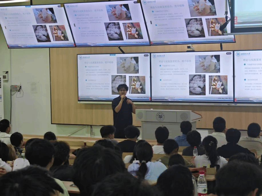 为进一步增强感染力,大会邀请了武汉楚兴国盛科技有限公司副总经理刘正亚作为员工代表发言。他结合自身的学习与工作经验,向学弟学妹们清晰展示了动物科学专业的职业发展路径与巨大的成长空间。他不仅分享了工作中如何运用专业知识为客户解决实际问题的成就感,还讲述了在日常生活中专业知识带来的思考与感悟。