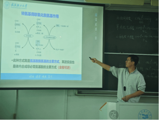 本次观摩课由李中华老师主讲,授课内容聚焦“氨基酸代谢”主题,主要包括“氨基酸的一般代谢”和“氨的代谢”两个部分。在讲解“氨基酸的一般代谢”时,李老师重点阐述了氨基酸氨基去除的三种方式;在“氨的代谢”部分,则对动物体内氨的运输途径及鸟氨酸循环进行了深入细致的讲解。